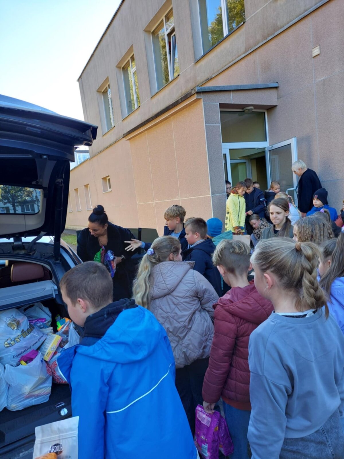 Penktadienį atvyko Naujosios Akmenės gyvūnų globos draugijos nariai ir visą surinktą maistą išsivežė. Jie džiaugėsi, kad vyko tokia akcija, kad yra daug gerų neabejingų žmonių, kurie prisideda prie beglobių gyvūnų šėrimo, išlaikymo ir dėkojo mūsų pradinukams už gražią iniciatyvą. Dėkojame ir mes Jūratei Šedienei, Dovilei Mačei, šios draugijos koordinatorėms, kurios mielai palaikė mūsų akciją ir kvietė mokinius kartu su tėveliais aplankyti beglobius katinėlius, ir gal būt kuriam nors iš jų suteikti draugiškus ir šiltus namelius.