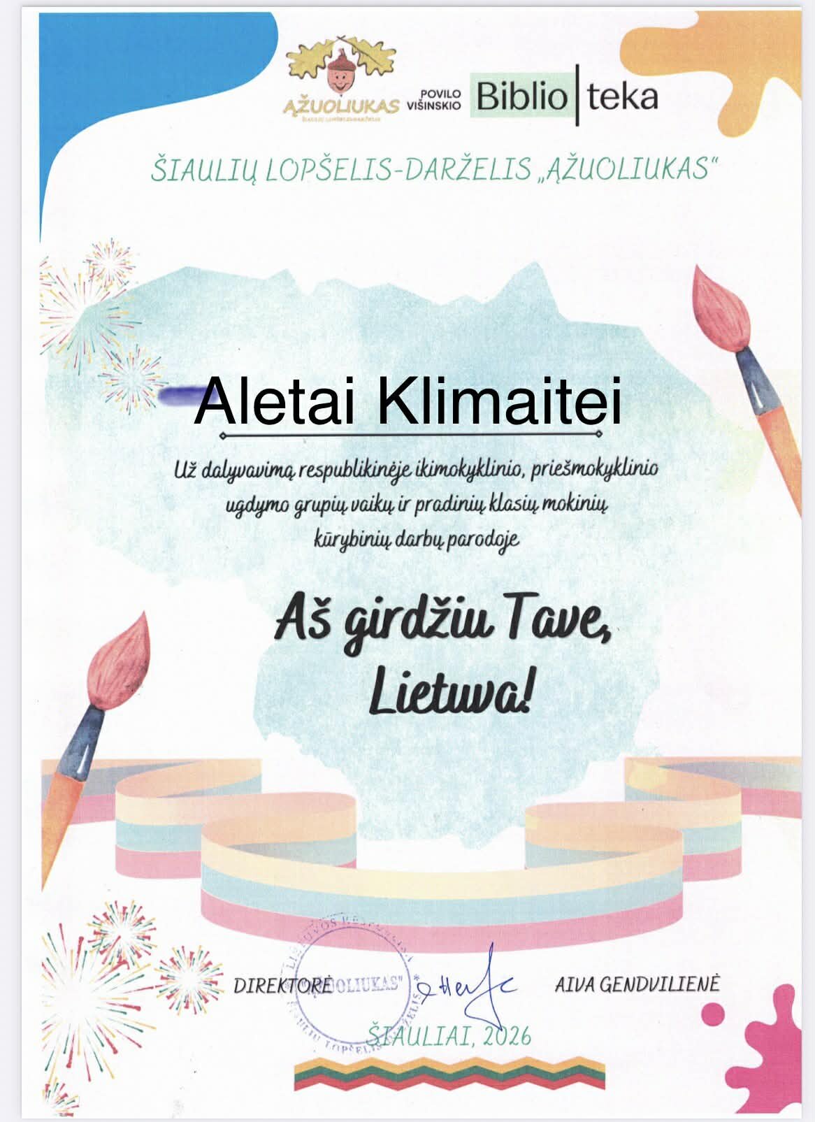 Prasidėjus valstybingumo šventėms, minint Vasario 16-ąją , Šiaulių lopšelis-darželis „Ąžuoliukas“, bendradarbiaujant Šiaulių apskrities Povilo Višinskio viešajai bibliotekai, organizavo respublikinę piešinių parodą „Aš girdžiu tave, Lietuva!“. Bibliotekos erdvėse eksponuojama daugiau nei 180 spalvingų darbų iš įvairių Lietuvos ugdymo įstaigų – jautrių, kūrybiškų ir prasmingų vaikų piešinių, atspindinčių meilę savo šaliai, jos istorijai ir tradicijoms.