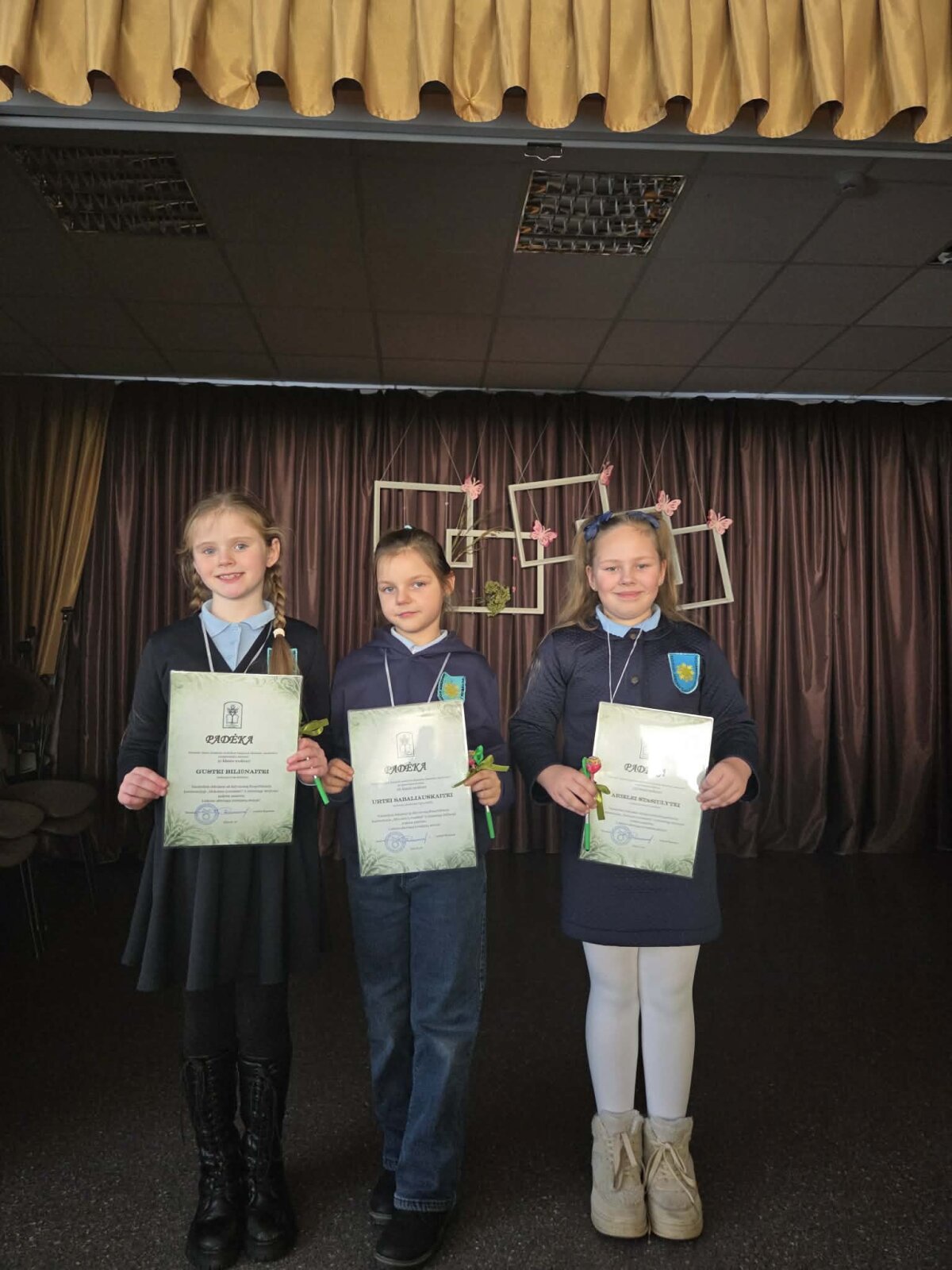 3d klasės mokinės Perla Jakševičiūtė, Goda Šimaitė ir Lėja Vilimaitė (mokytoja metodininkė Daiva Jovaišaitė) supažindino su popieriaus rūšimis ir jų savybėmis. Savo pranešimą „Popierius mūsų gyvenime“ paįvairino tvaraus projekto pristatymu: iš nebereikalingų ar nebenaudojamų pakuočių, reklaminių skrajučių pagamino popierių, o iš jo – papuošimus savo klasei.