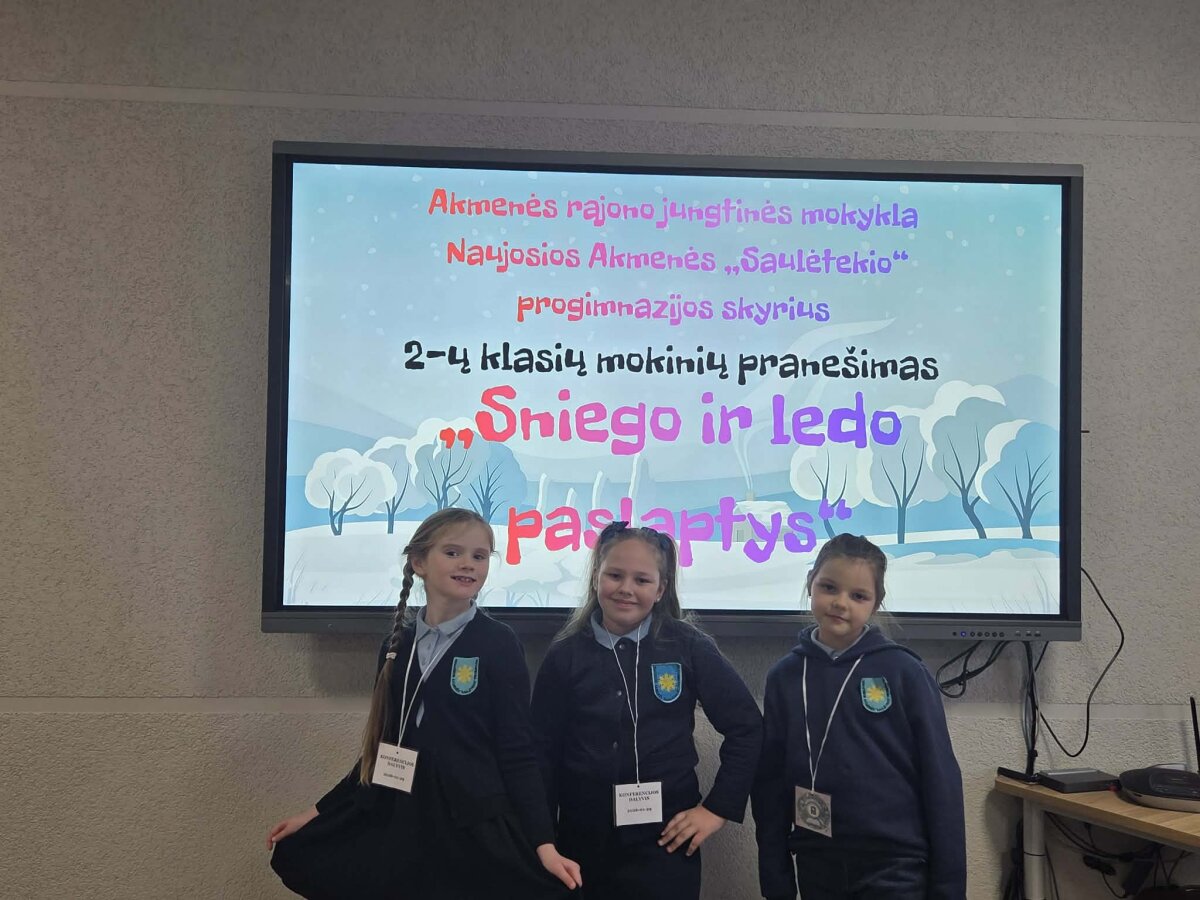 2b klasės mokinė Urtė Sabaliauskaitė (mokytoja metodininkė Sigita Gadžij), 2c – Gustė Biliūnaitė (mokytoja Greta Balčiūnė) ir 2d – Arielė Stasiulytė (mokytoja Ilona Dvarionienė) pristatė pranešimą „Sniego ir ledo paslaptys“. Mokinės, padedamos mokytojų, atliko nesudėtingus bandymus, kurių metu susipažino su vandens būsenų kaita ir žiemos gamtos reiškiniais.