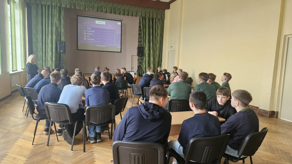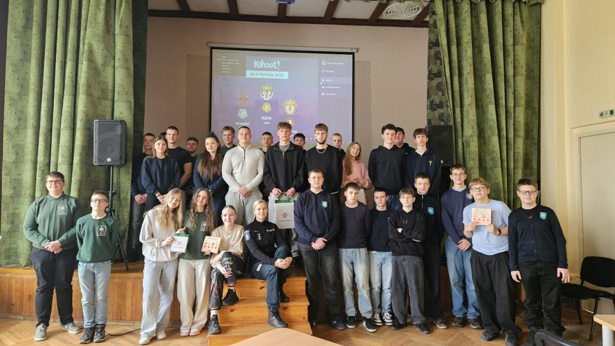 Dvi mūsų mokyklos aštuntokų komandos kovo 12 dieną dalyvavo Lietuvos policijos organizuojamame konkurse-protmūšyje „Aš ir policija“. Šio konkurso tikslas – ugdyti mokinių teisinį ir pilietinį sąmoningumą, skatinti domėtis policijos pareigūno profesija bei saugiu ir atsakingu elgesiu įvairių grėsmių akivaizdoje.
