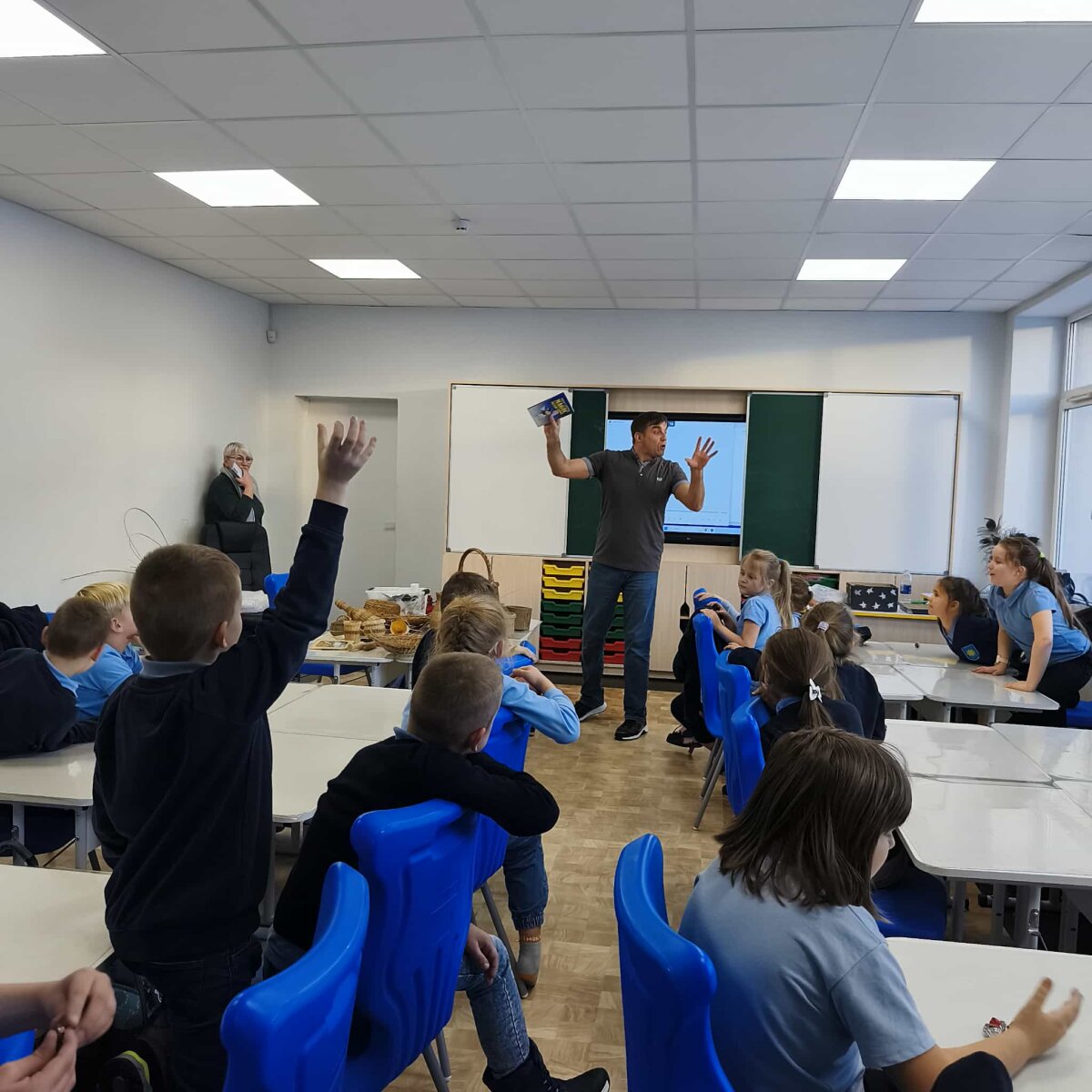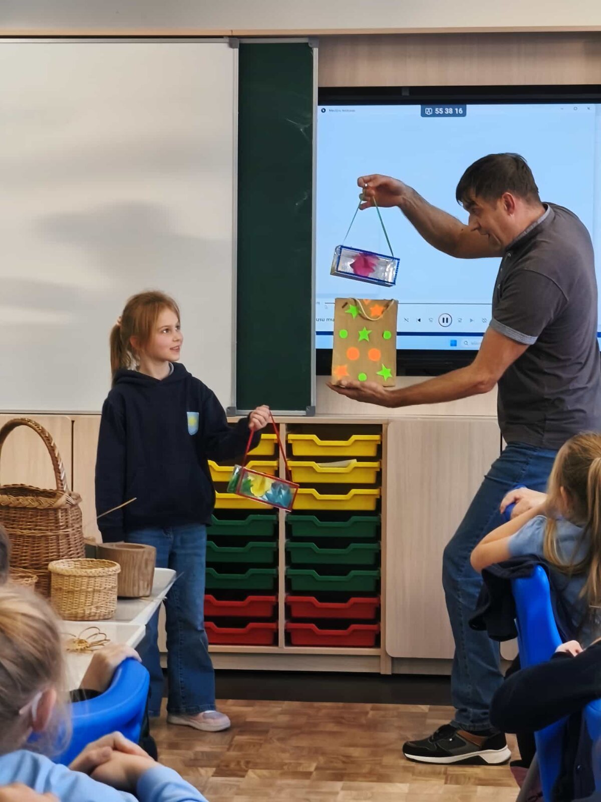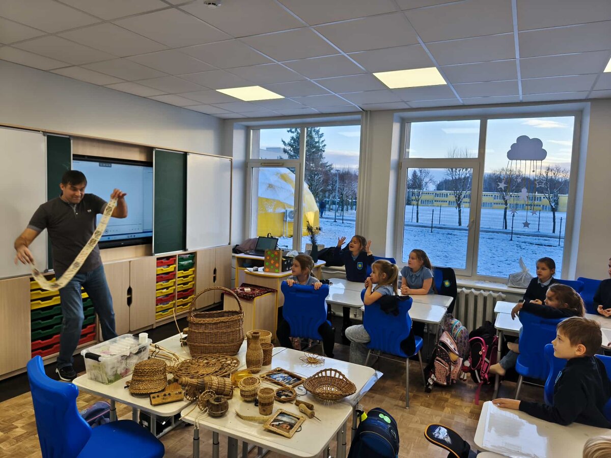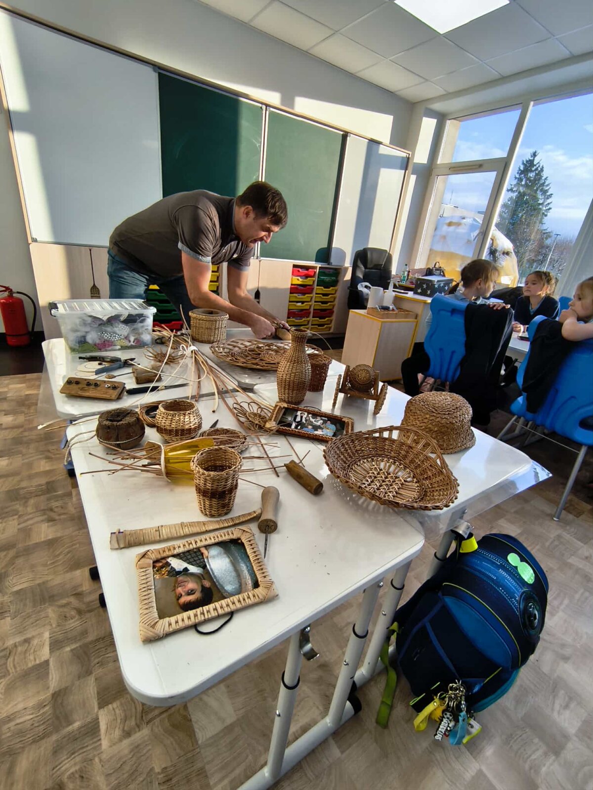 Į pailgintos dienos grupę mokytojos Linos kvietimu atvyko svečias – Dainius Serapinas. Jis atsinešė gausybę iš vytelių pintų dirbinių ir papasakojo vaikams, kaip ruošiamos vytelės, iš kur jos gaunamos ir kodėl svarbu jas tinkamai paruošti prieš pynimą. Mokiniai iš arti pamatė, kaip gimsta pinti krepšeliai, vazelės, padėkliukai ir net nuotraukų rėmeliai.