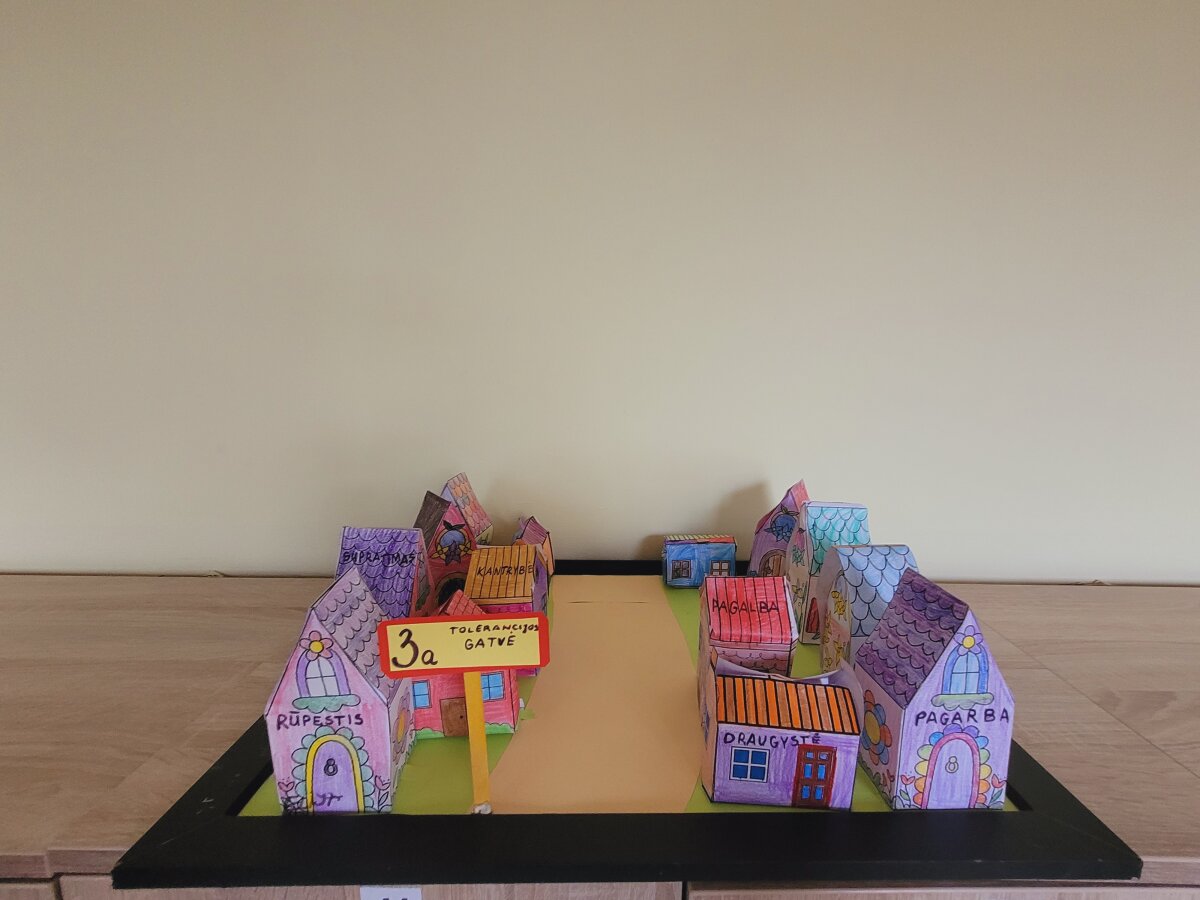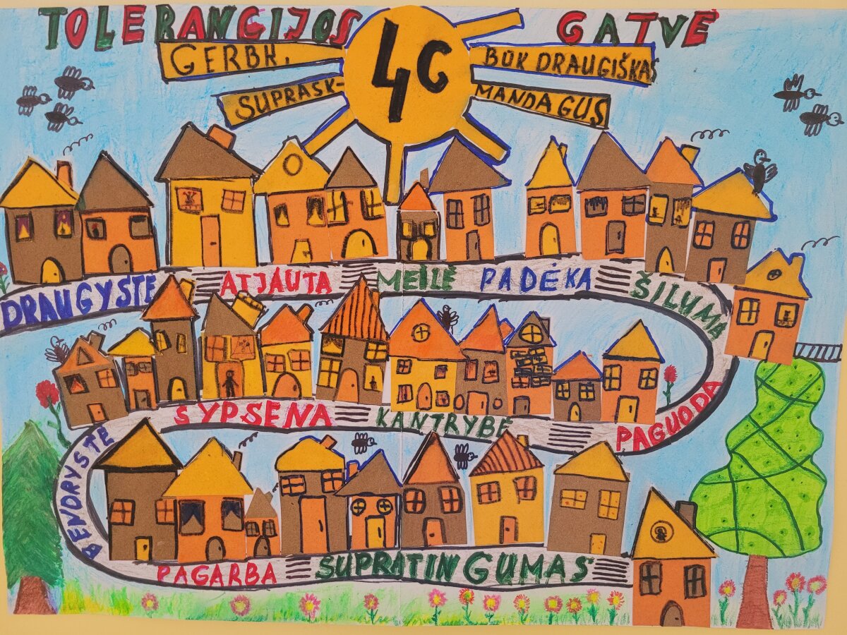 Kūrybiniuose darbuose (piešiniuose, plakatuose, maketuose) vaikai akcentavo pagarbos, empatijos, supratimo ir priėmimo nepaisant skirtumų (tautybės, pažiūrų, mąstymų, charakterių, gebėjimų ir pomėgių) svarbą. Sukurta gatvė priminė, kad tolerancija prasideda nuo mažų kasdienių žingsnių.