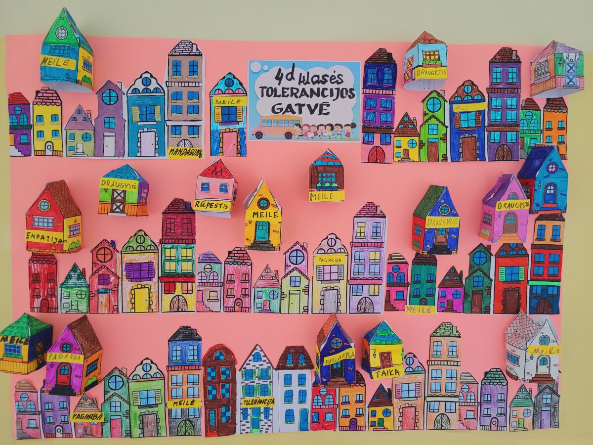 Minėdami Tarptautinę tolerancijos dieną, 1-8 klasių mokiniai lapkričio 17-20 dienomis aktyviai kūrė šių metų simbolį – Tolerancijos gatvę.