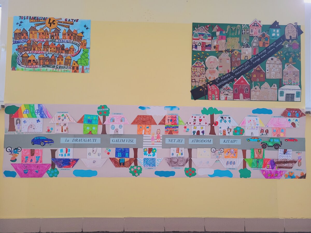 Tolerancijos gatvės papuošė pradinės mokyklėlės ir progimnazijos skyriaus I aukšto koridoriaus sienas.