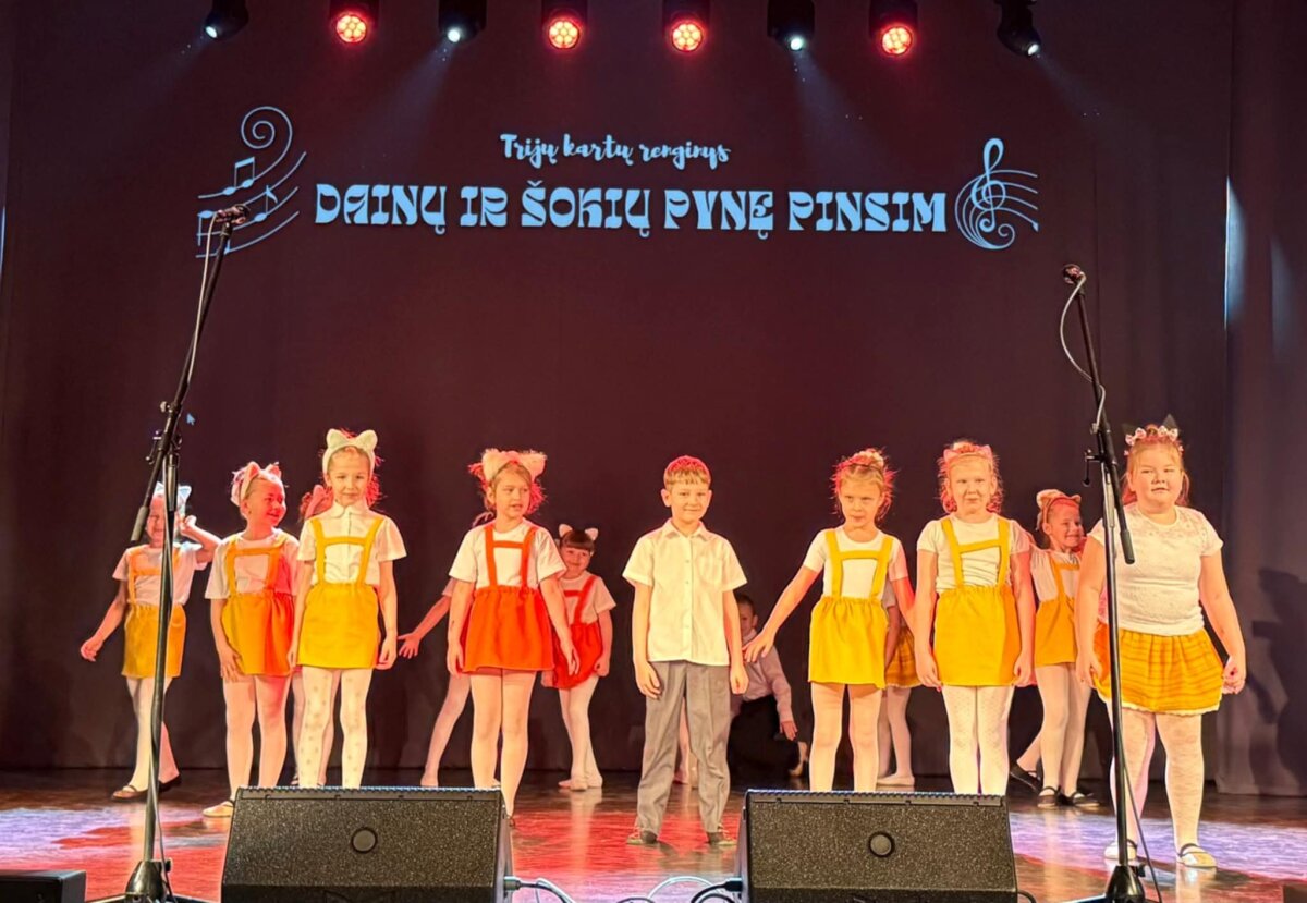 Progimnazijos skyriaus šokėjai renginyje ,,Dainų ir šokių pynę pinsim“