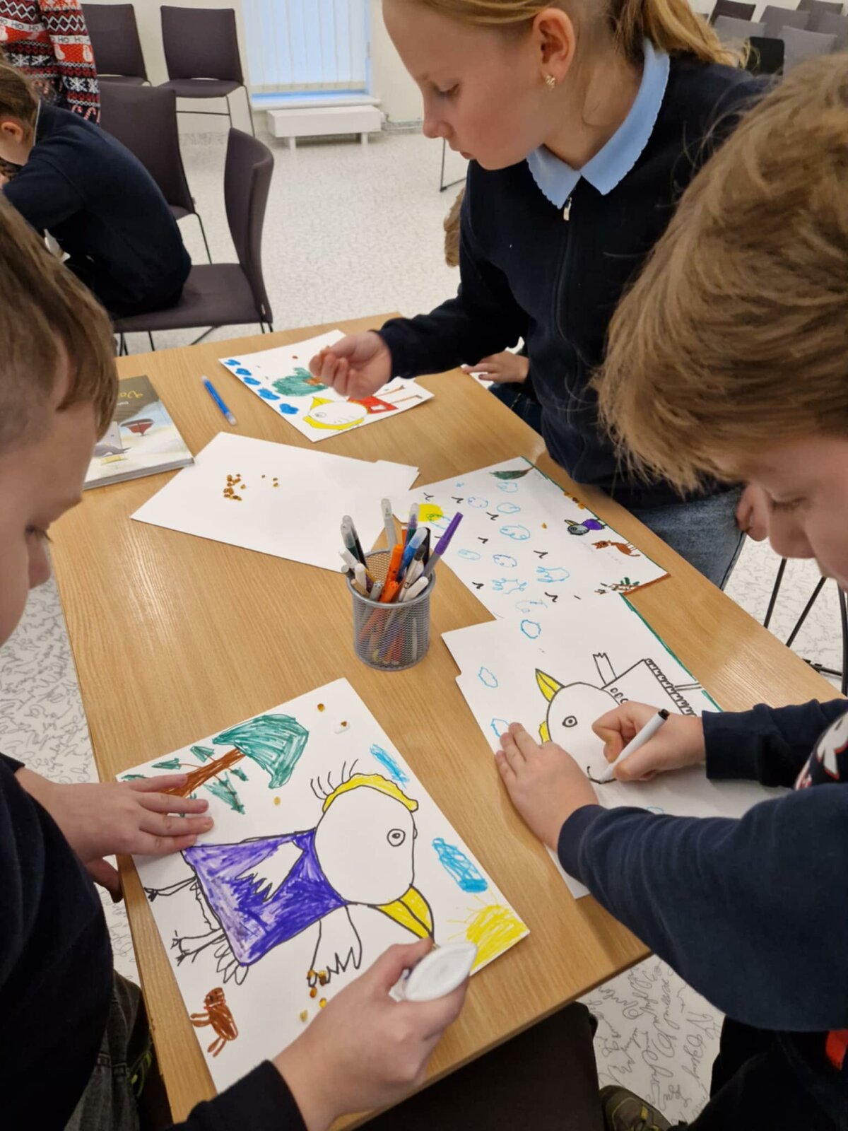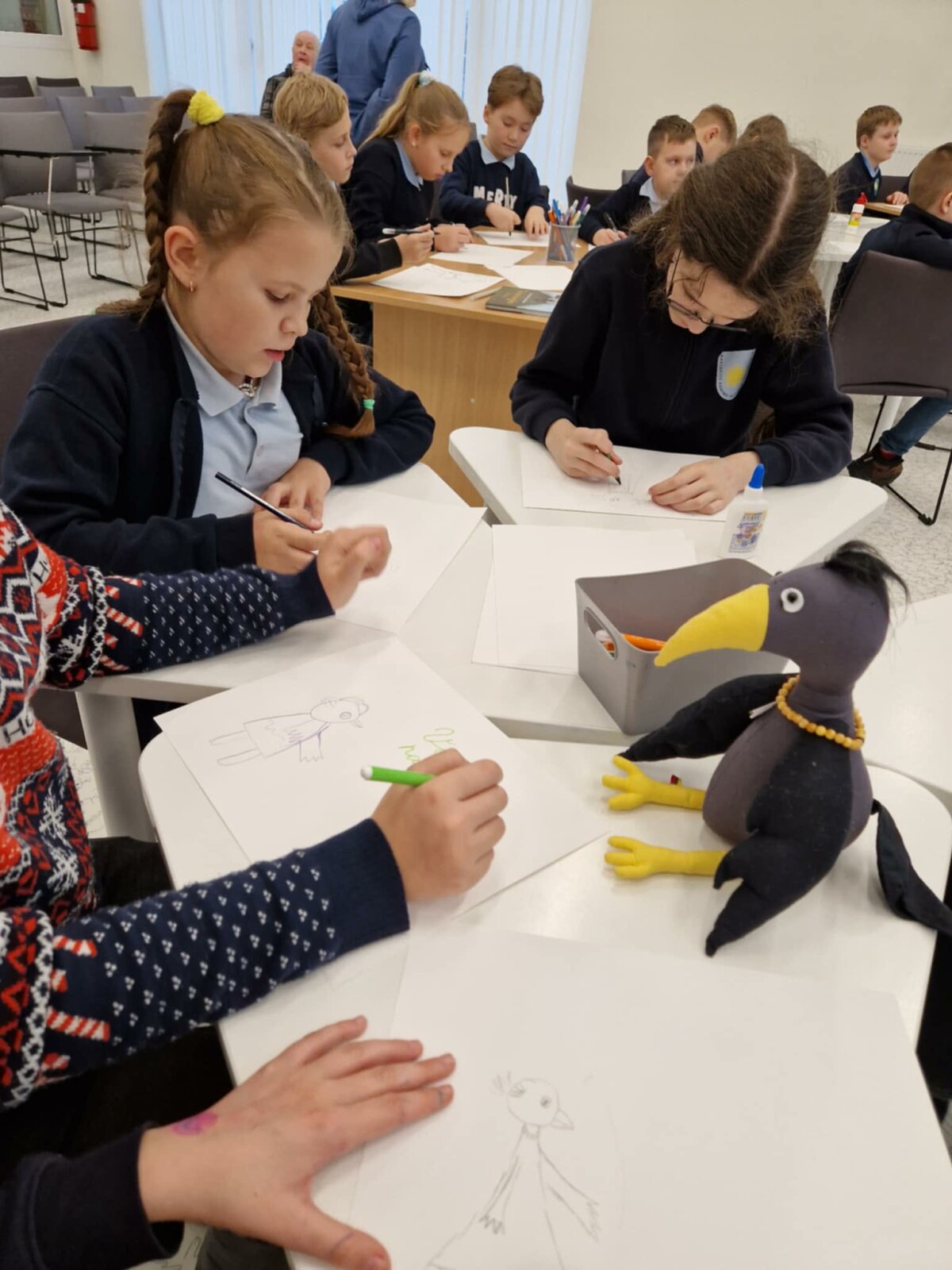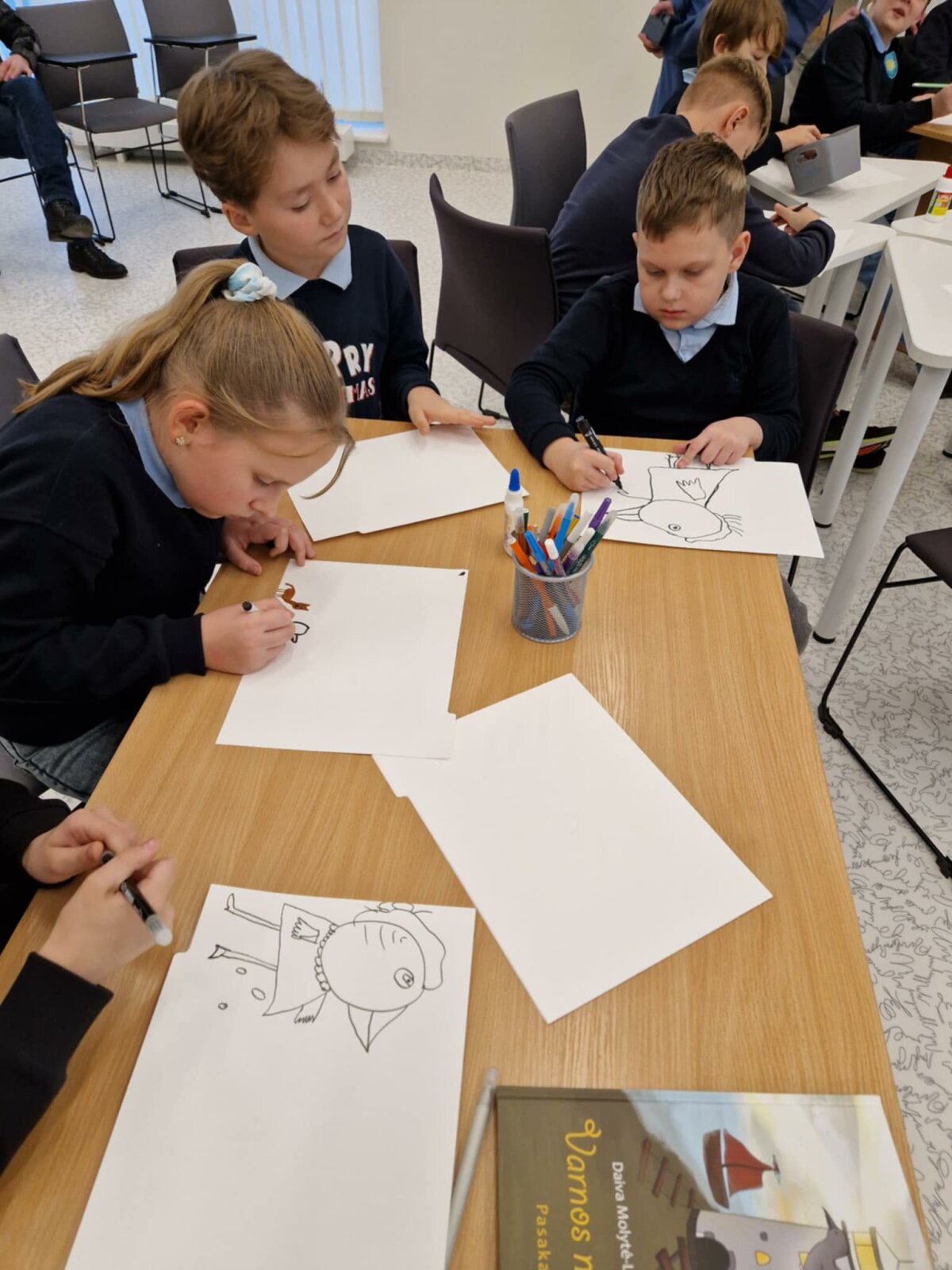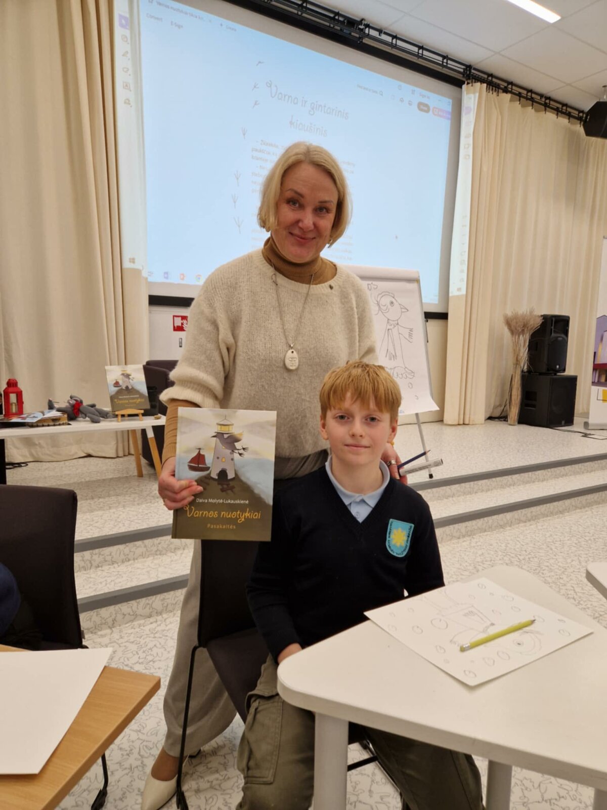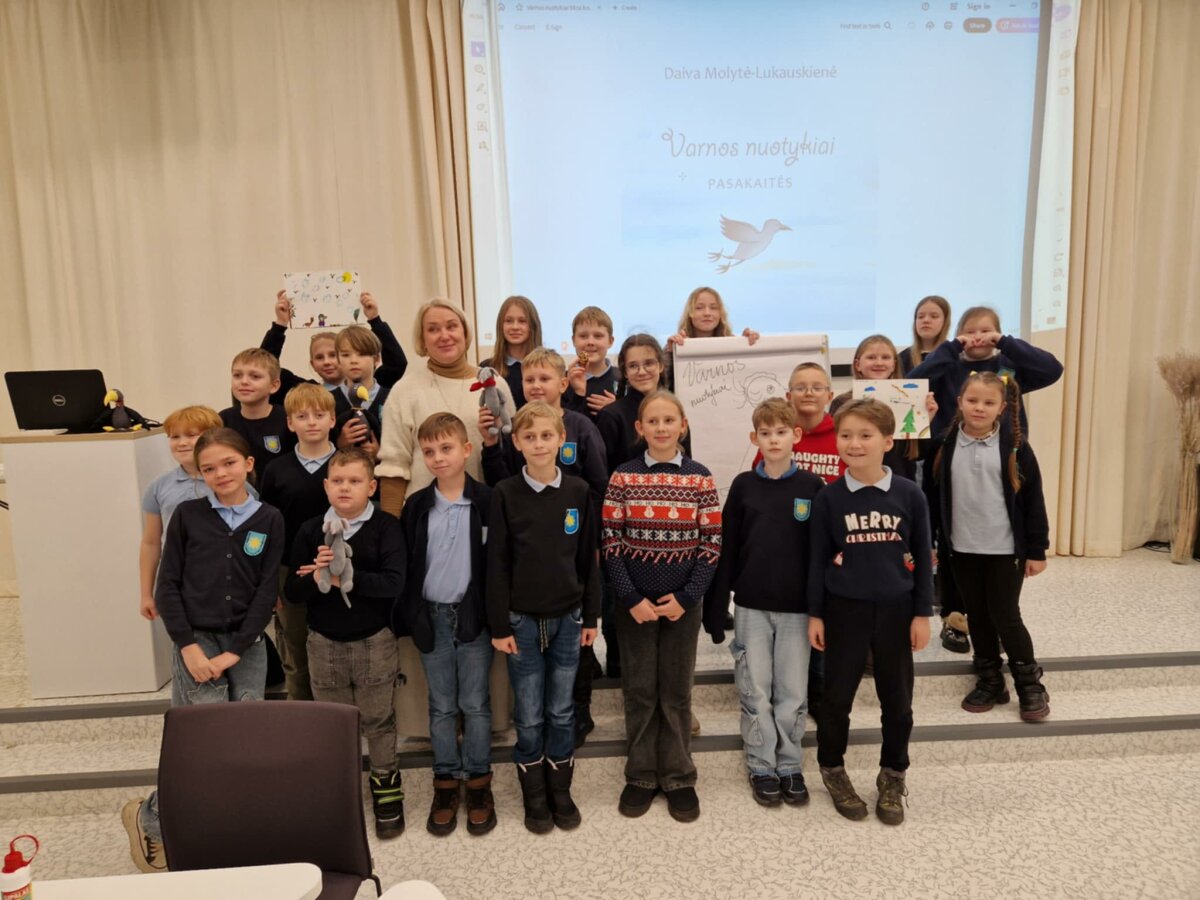 Gruodžio 10 dieną ,,Saulėtekio“ progimnazijos skyriaus 4d klasės mokiniai dalyvavo susitikime su rašytoja, dailininke Daiva Molyte-Lukauskiene ir jos naujosios knygos vaikams ,,Varnos nuotykiai“ pagrindine veikėja Varna. Renginio metu autorė papasakojo, kaip gimė smalsios varnos istorija, perskaitė keletą pasakų, maloniai bendravo su jaunaisiais skaitytojais ir net atskleidė ne vieną paslaptį. Popietė ketvirtokams patiko: jie klausėsi, skaitė, piešė, žaidė.