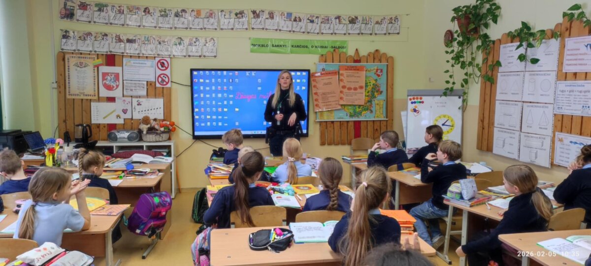 Vasario 5 dieną Akmenės rajono jungtinės mokyklos Naujosios Akmenės „Saulėtekio“ progimnazijos skyriuje socialinė pedagogė Vilija Šnarienė kartu su Akmenės rajono PK pareigūne Aušrine Bumble 1-4 klasių mokiniams suorganizavo akciją „Šviesiausia klasė – 2026!“. Specialistės vaikams priminė, kaip tinkamai reikia prisegti, nešioti atšvaitą, bei skaičiavo kiek pradinukai jų turi. Nugalėtojais tapo 4b, 1c, 1d klasės mokiniai, kurie turėjo daugiausia atšvaitų.