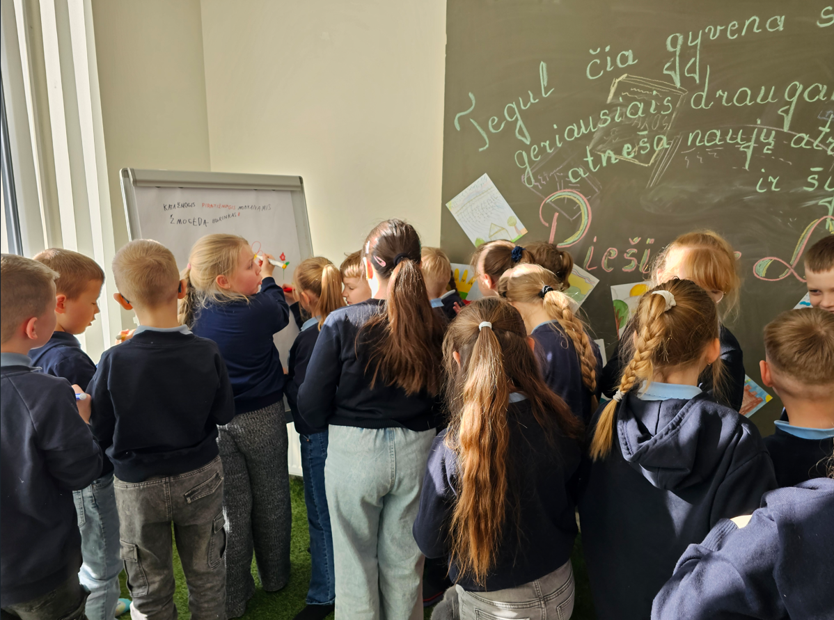 Vasario 25 dieną Naujosios Akmenės „Saulėtekio“ progimnazijos skyriaus 1a klasės mokiniai buvo pakviesti į edukaciją „Kalba – gyva! Atraskime lietuvių žodžių lobius“, kuri vyko Akmenės rajono savivaldybės viešosios bibliotekos vaikų erdvėje.