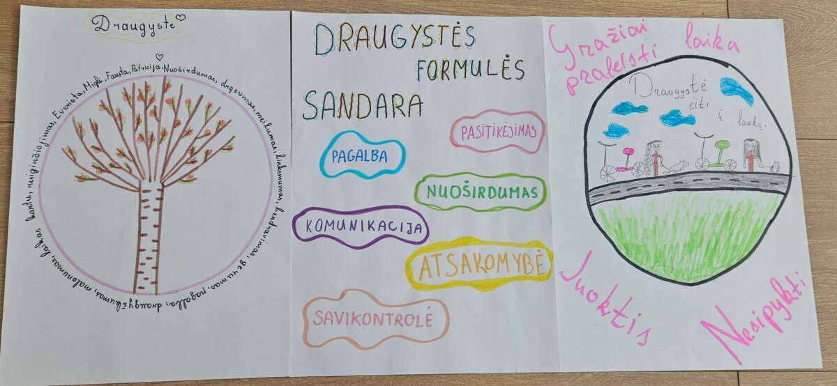 Sąmoningumo mėnesį vainikavo draugams skaitomos padėkos ir visą klasę suvienijusi „Draugystės grandinė“, priminusi, kad kiekvienas galime prisidėti prie draugiškos ir saugios mokyklos kūrimo.
