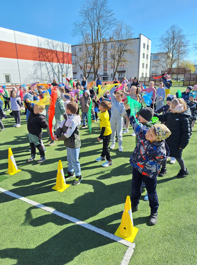 Renginys vyko progimnazijos skyriaus kiemelyje, bendradarbiaujant su priešmokyklinio ugdymo grupių vaikais. Mažieji dalyviai aktyviai įsitraukė į įvairias sportines veiklas, estafetes bei žaidimus, tad netrūko gerų emocijų, juoko ir draugiško bendravimo.