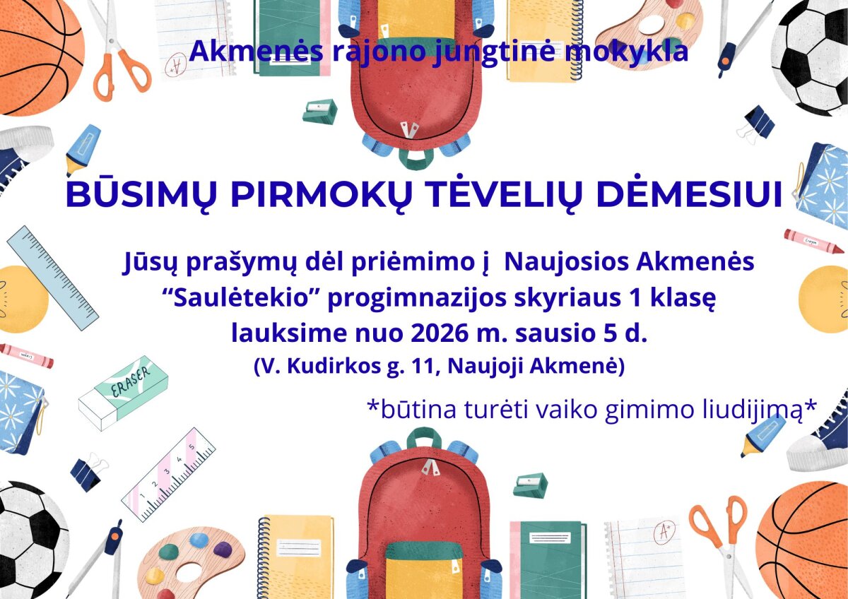 BŪSIMŲ PIRMOKŲ TĖVELIŲ DĖMESIUI Nuo 2025 m. sausio 6 d. laukiame jūsų prašymų d... -