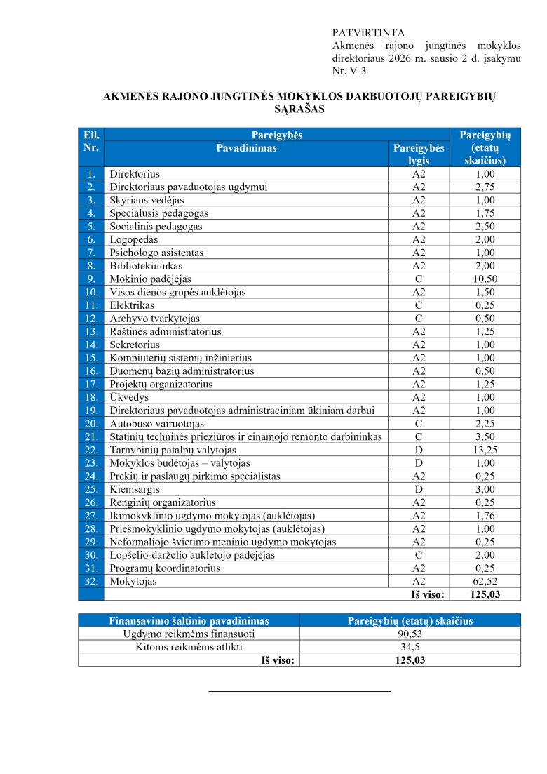 Pareigybių sąrašas